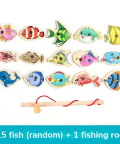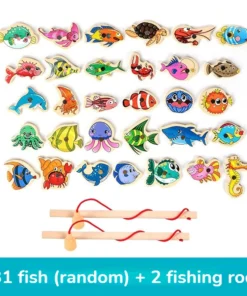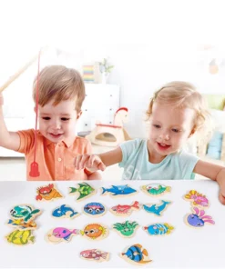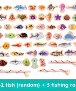 Montessori Wooden Fishing Toys For Children Magnetic Marine Life Cognition Fish Games Parent-Child Interactive Educational Toy